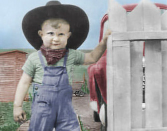 This is an image colouring of an actual photo of myself getting my very first haircut from my grandfather.